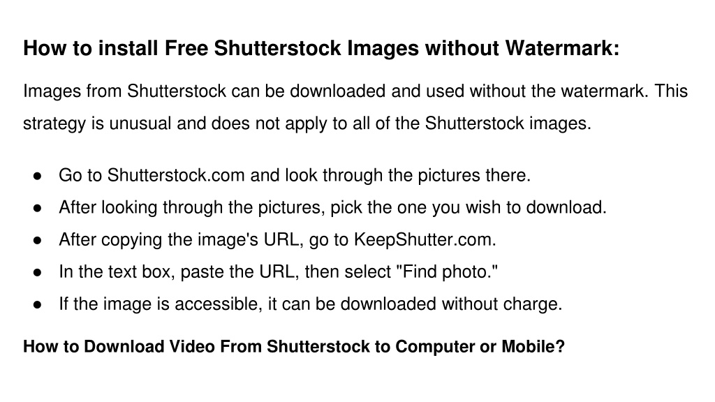 Some partner sites or platforms integrate Shutterstock images and provide ways to use them without downloading. For example, certain presentation tools or content management systems might allow you to insert Shutterstock images directly into your project, leveraging their API or embed options.